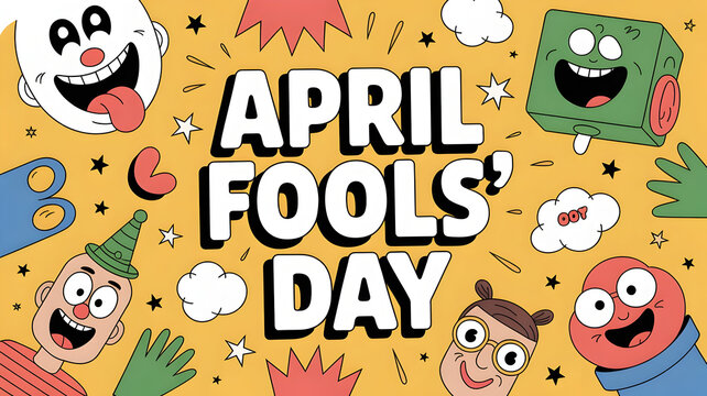 Vibrant april fools day graphic with cartoon characters
