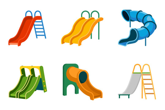 Playground slides silhouette, children playing, spiral slide, tunnel slide, outdoor park activities, fun kids play, recreation equipment, happy childhood, vector illustration design