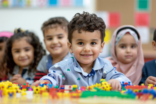 Photography of children portrait from Saudi Arabia in a preschool or kindergarten class.