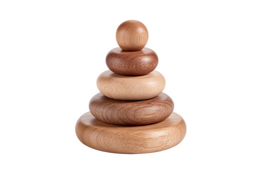 Stacked wooden discs, a natural tone, form a pyramid