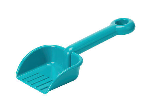 Isolated blue sand scoop for children to play in the sand and dig at the beach or sandbox