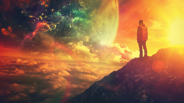 Un hombre durmiendo plácidamente entre nubes acolchadas