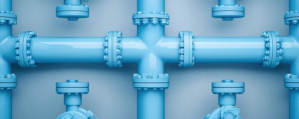 blue pipes and fittings arranged against a soft backdrop, showcasing industrial design and plumbing components.