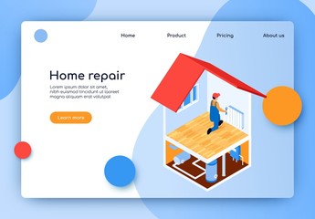 Isometric Lettering Home Repair Landing Page.