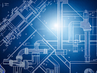 Pipelines textured background. Industrial vector banner with pipes and equipment.