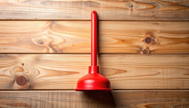 Red Plunger on a Weathered Wooden Surface Overhead View Studio Shot Clean Background