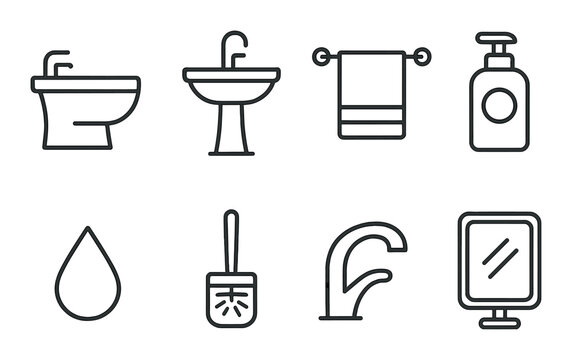 Water utility outline icons set – linear, plumbing, filtration, hydrology symbols