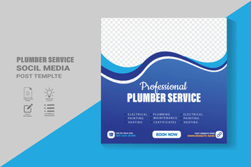 Plumbing service social media post design. Professional plumbing service flyer poster template