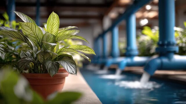 Plants and Water Pipes Harmoniously Coexist Indoors