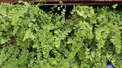 Maidenhair Fern, Adiantum. Ferns grow under water pipes. There's a constant leak of water to water these plants. I have known these plants for 13 years, of course they're there before