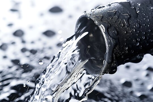 Old rusty pipe joint leaking water dramatically amidst dark background