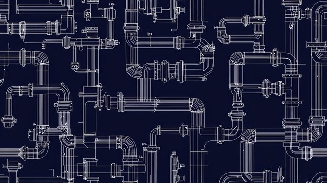 White piping on a blue background for water, gas, and oil. Illustration in line art style.