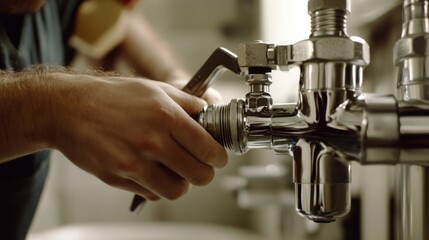 Plumber repairing a leaking faucet in a kitchen. Featuring attention to detail and expertise