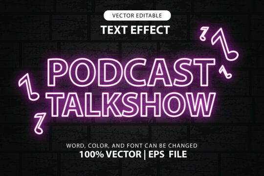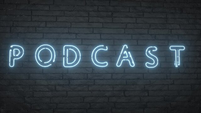 Neon sign on brick wall background podcast concept rendering for graphic design