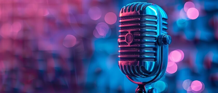 microphone icon showing inside of interior with sunray shiny realistic background 3d render