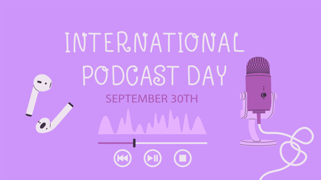 microphone and headphones,  International Podcast Day vector illustration - Podcast day dedicates September 30th is an international celebration of the power of podcasts