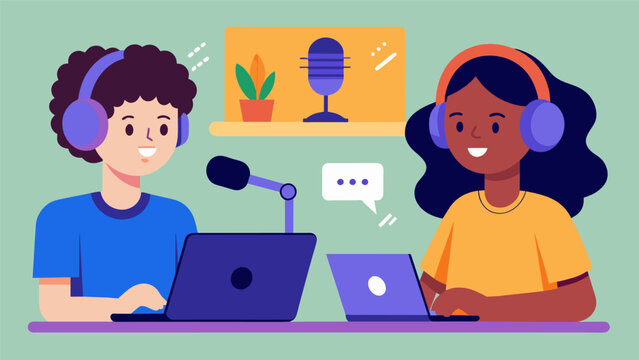 A podcast episode hosted by tweens delving into the challenges of navigating school and friendships in the digital age.. Vector illustration