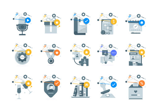 A collection of colorful icons representing various aspects of podcast hosting, including recording, editing, and publishing, all in a harmonious design.