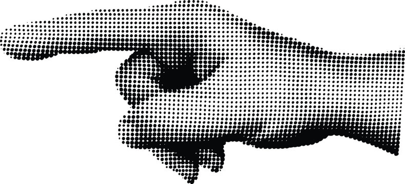 Halftone Hand Pointing Left: An illustrative rendering of a hand confidently pointing left, using a halftone dot pattern to create depth and texture, against a clean background.