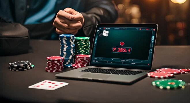Online poker on the laptop.