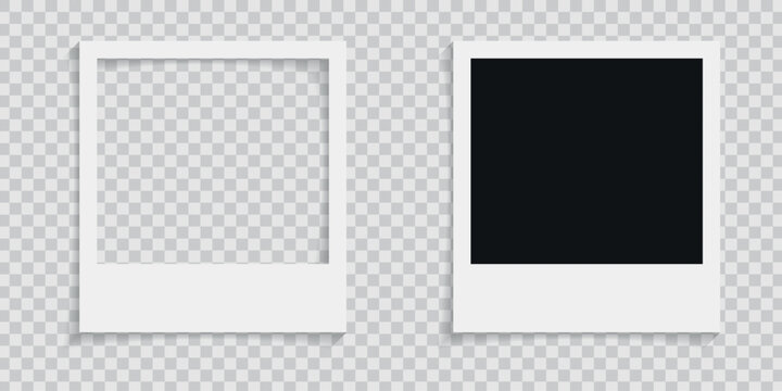 Realistic Polaroid photo frame mockup set. Isolated frame card vintage photography on alpha background. Empty retro snapshot image with white frames. White paper border. Vector design illustration.