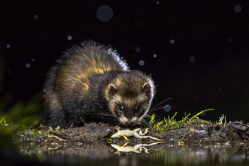 European polecat with frog prey