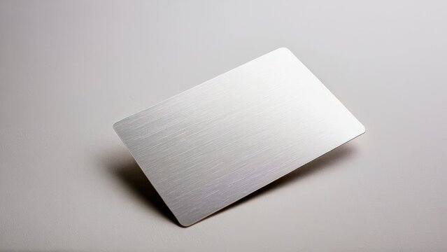 Elegant metallic card with a brushed texture placed on a minimal white background.