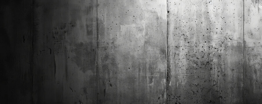 Weathered concrete wall texture in grey tones offers grunge, brut industrial style. Raw, aged cement surface provides modern, urban interior design backdrop wallpaper. Seamless, textured look suits