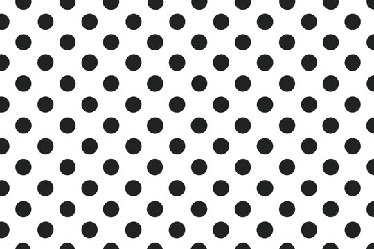 Seamless polka dot pattern with black circles on a white background. Simple vector geometric texture. Classic monochrome repeatable design for print, web, or fabric.