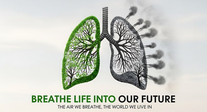 Air pollution and lung health awareness campaign for clean air and healthy lungs in the environment -smog air pollution