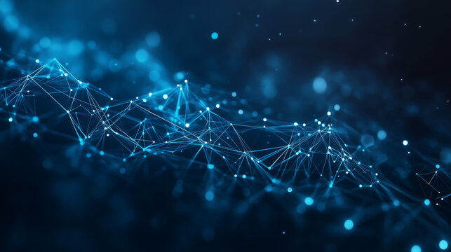 Abstract blue low poly plexus network against a dark background. Perfect for technology, digital, and network-themed designs