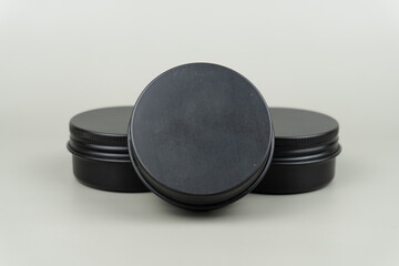 Circular Hair Pomade Container in Studio Setting, Minimalist Barbershop Aesthetic, Professional Product Display