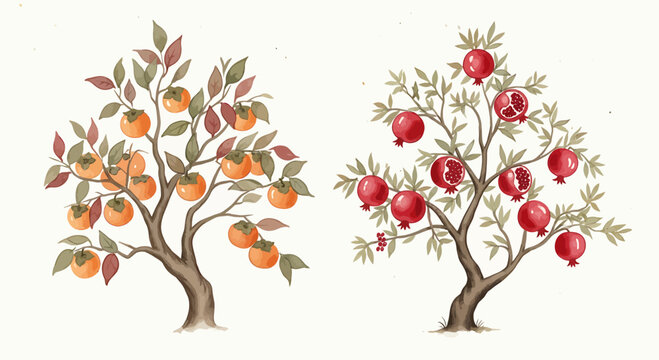 Two artistic trees laden with fruit.