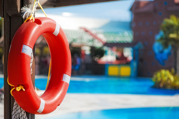 Lifebuoy by the pool at summer holiday resort