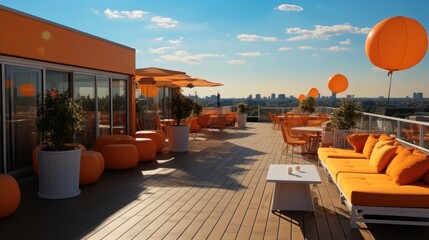 Orange new buildings, Real estate event party on the roof of the building.