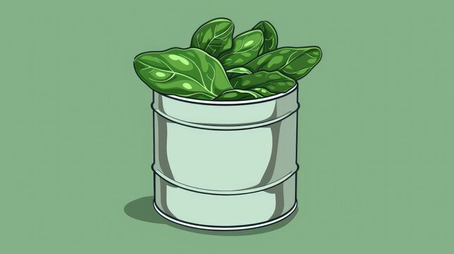 Illustration of a spinach tin can icon in a cartoon style perfect for web design purposes