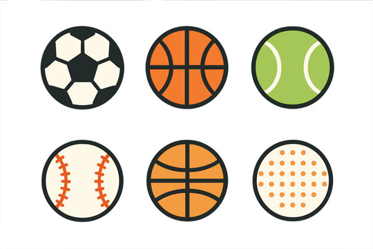 Sport Balls Icon Set. Various popular sport balls icon including basketball, football, soccer, volleyball, rugby, golf, tennis, baseball and more.
