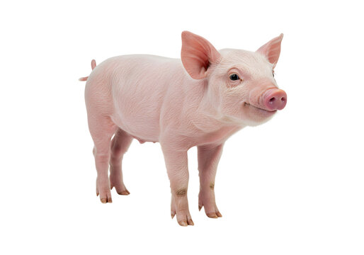 Adorable Pink Piglet, Studio Shot, Cheerful Expression, Farm Animal, White Background,  Agricultural Theme, Cute, Friendly, Healthy, Young Pig.