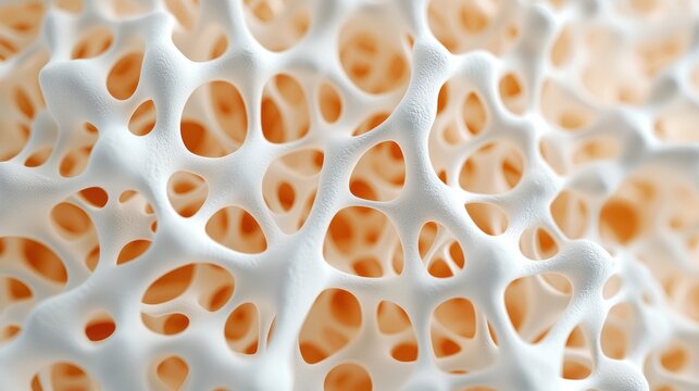 Detailed Macro View of Trabecular Bone Tissue with Spongy Structure and Porosity, High Resolution 8K Image with Copy Space