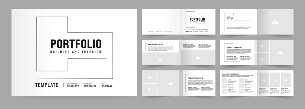 Real estate portfolio design or interior portfolio pages or architecture portfolio brochure template with 12 pages premium EPS vector design