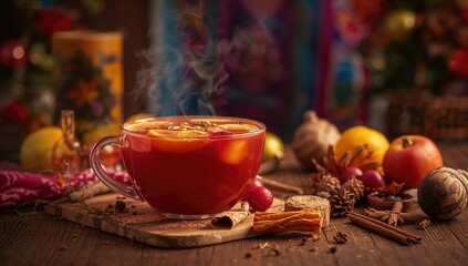 Traditional Mexican fruit beverage known as ponche, seasonal treat during Christmas