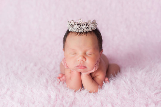 Newborn Baby Girl Wearing a Rhinestone Princess Crown