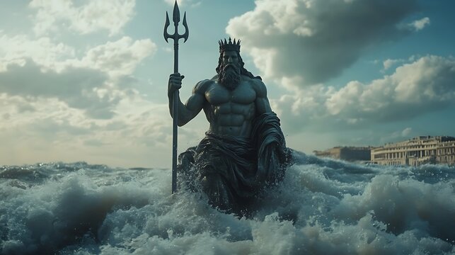 A beautiful image of Poseidon, the god of the seas. Olympian God. Greek god. Mythology. Image managed by AI