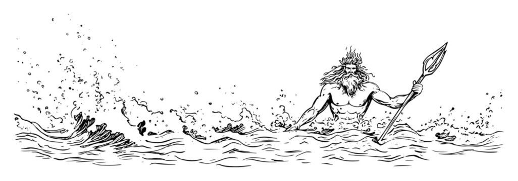 poseidon god in classic pen style