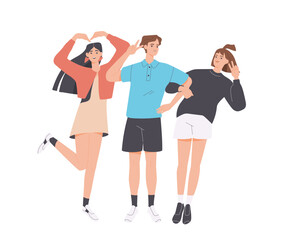 Three young women celebrating friendship with playful pose