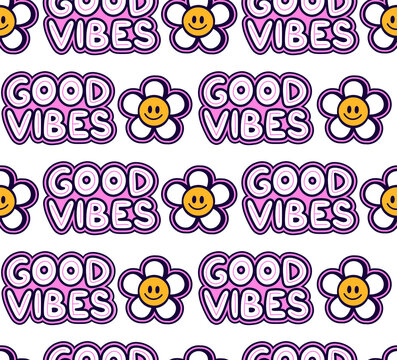 Good Vibes colorful vector phrase isolated on a white background. Typography banner card.