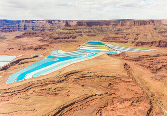 Aerial view Paradox Basin potash pools, Utah, USA.