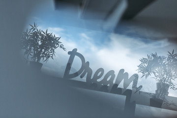 Dream writing on background of cloudy sky.