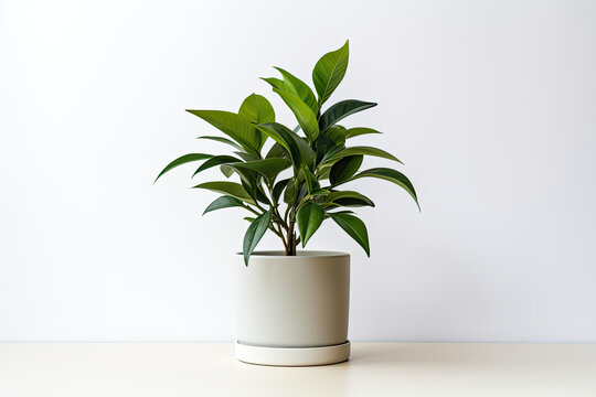 green potted plant adding life to a modern wooden table Generative AI