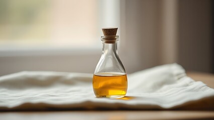 substance. A traditional glass vial of oil resting on a simple cloth in soft light. event programs, museum guides, designed for cultural heritage projects and event programs, preserves heritage.